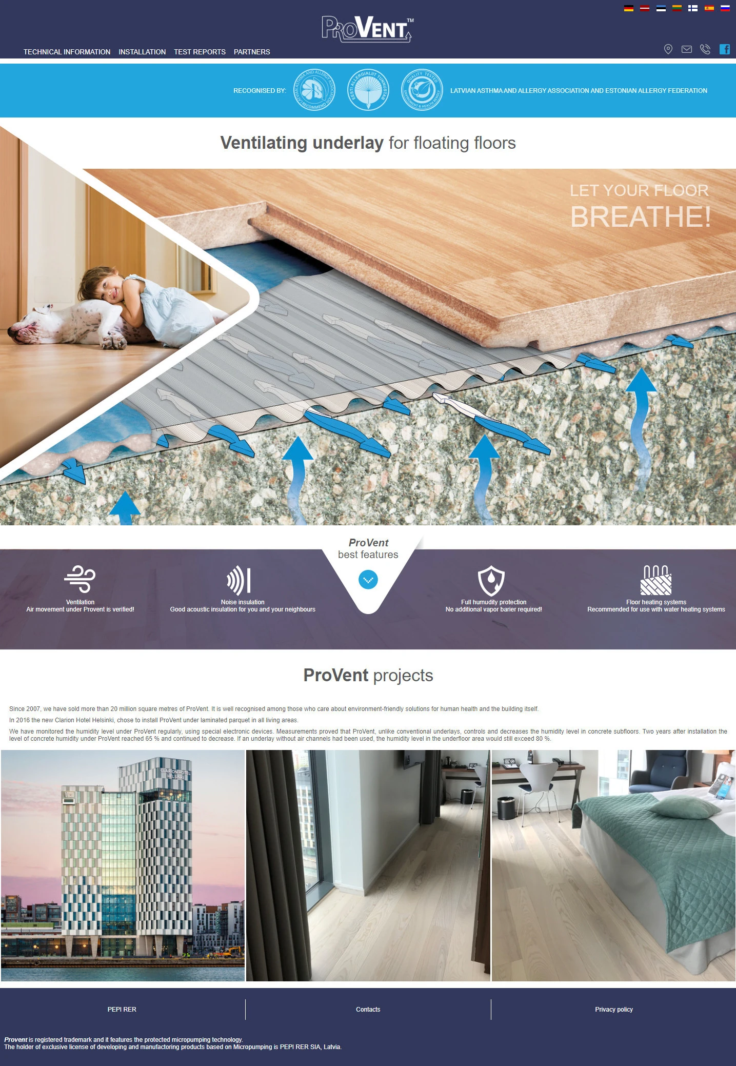 SIA "PEPI RER" ir vadošais putu polietilēna ražotājs Baltijā. Viens no šī uzņēmuma produktiem ir ProVent - ar īpašu tehnoloģiju ražots ventilējošs grīdas apakšklājs. Mājas lapā iespējams detalizēti iepazīties ar produkta iespējām, tehnisko informāciju, lietošanu, sertifikātiem un ar citu saistīto dokumentāciju.